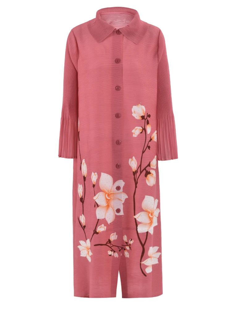 Source : www.walmart.comLANMREM Floral Print Pleated Dress Women’s Lapel Single Breasted