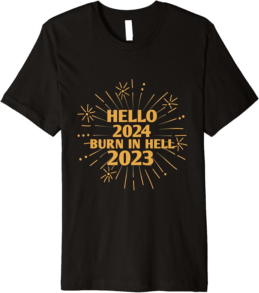 Source : tourbandtees.comAmazon.com: Hello 2024 Burn in Hell 2023 Happy New Year Funny NYE
